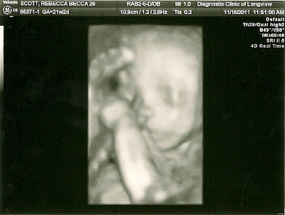| Here's a straight on view of her face & stomach. We are really looking forward to our 4D ultrasound in a week & half! |