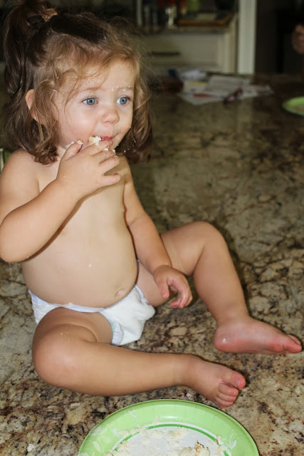 To save the dress, we opted to take it off while she ate lunch. I think she was eating spaghetti and it's a whole body meal, she always ends up covered head to toe it seems like. It would definitely help if she would wear some kind of big but she's too big for that.